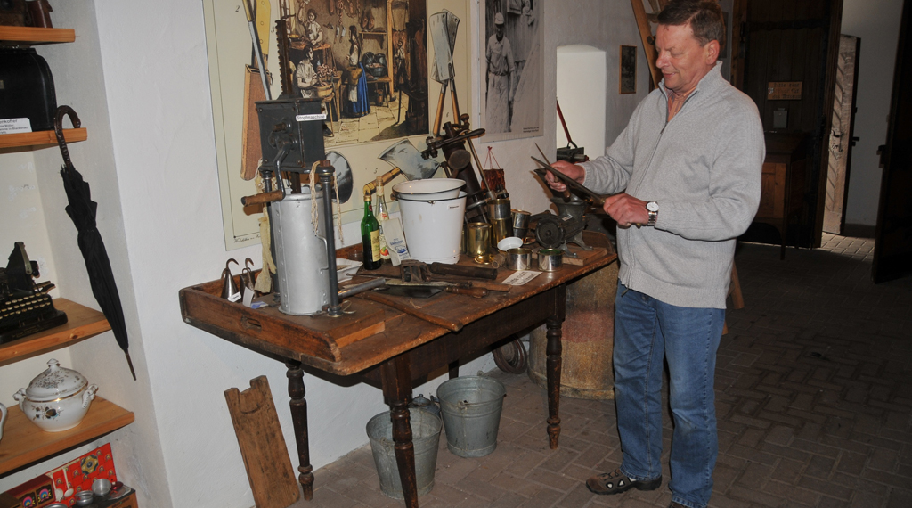 Im Heimatmuseum Blankenau gibt es eine Menge zu entdecken. Im Erdgeschoss finden sich viele Zeugnisse des früheren Handwerks und der Landwirtschaft. Von der Flachsknicke über einen Sackheber bis hin zu einer alten Mäusefalle – die vielen Originale im Heimatmuseum berichten vom Alltag und Erfindungsreichtum unserer Vorfahren. Zum großen Teil sind die Exponate noch mit ihren einstigen Werkzeugen bestückt. Vom Hebammenkoffer über das Nähkästchen bis hin zur gänzlich ausgestatteten Schusterwerkstatt – „geschulte Hände könnten hier jederzeit mit ihrem Handwerk loslegen“, freut sich Reuß über die gut und vor allem vollständig erhaltenen Originale.