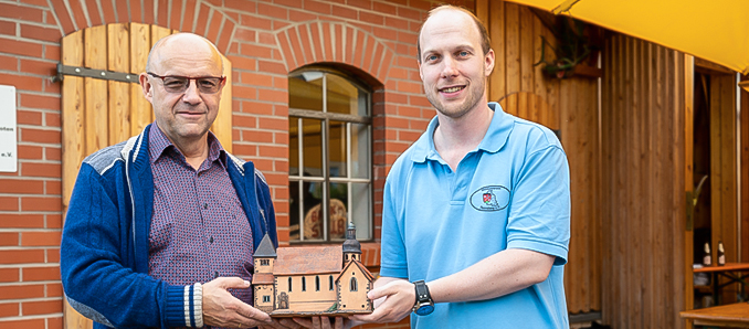 Das neueste Projekt konnte Vorstandsmitglied Michael Kircher vorstellen. Der Verein bietet exklusiv seinen Mitgliedern eine Ton-Nachbildung der Liobakirche an, welche auch als Lichthaus genutzt werden kann. ,,Ohne euch Mitglieder ist ein Verein nichts – wir als Heimatverein wollen euch etwas zurückgeben, indem nur ihr die Liobakirchen erwerben könnt. So könnt ihr zurecht stolz darauf sein, dass ihr Mitglied des Heimatvereins Petersberg seid. Natürlich könnt ihr genau mit diesem Argument auch Neumitglieder werben‘‘, führt Michael Kircher lächelnd aus. Peter Scheel erklärt zum Ende der Jahreshauptversammlung, dass er froh ist, dass das Vereinsleben langsam wieder Fahrt aufnimmt. So kann die Backgemeinschaft und auch die Handarbeitsgruppe ihre Arbeit im kleinen Ausmaß wieder aufnehmen, da sie im Freien die Abstand- und Hygieneregeln einhalten können. ,,Wenn man so lange auf das Vereinsleben verzichten musste, merkt man erst so richtig, wie sehr man genau diese Gemeinschaft und die Geselligkeit vermisst‘‘, ergänzt Vorstandsmitglied Christoph Schmitt hierzu. +++