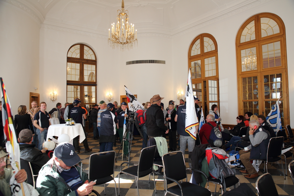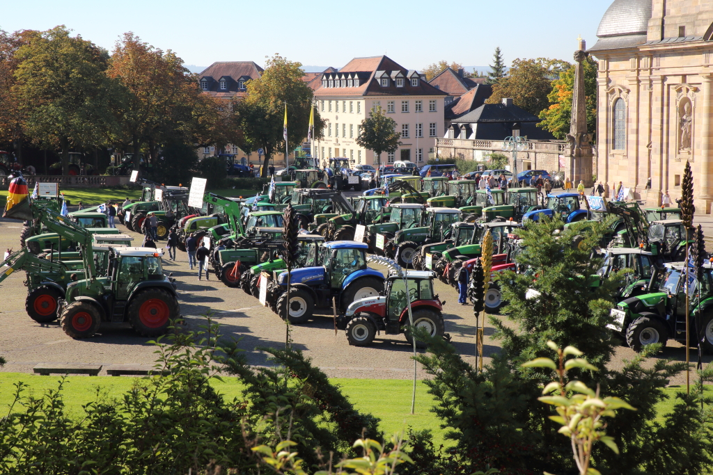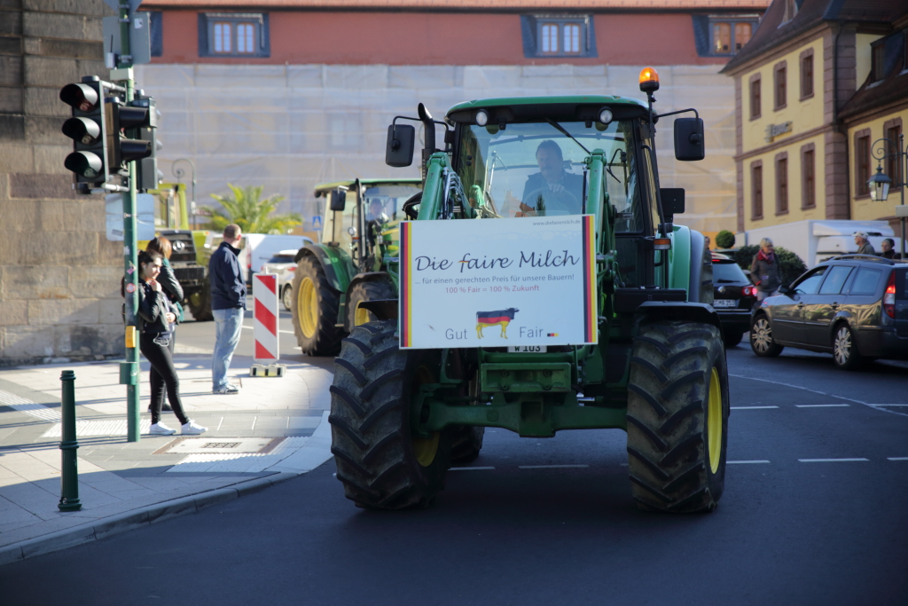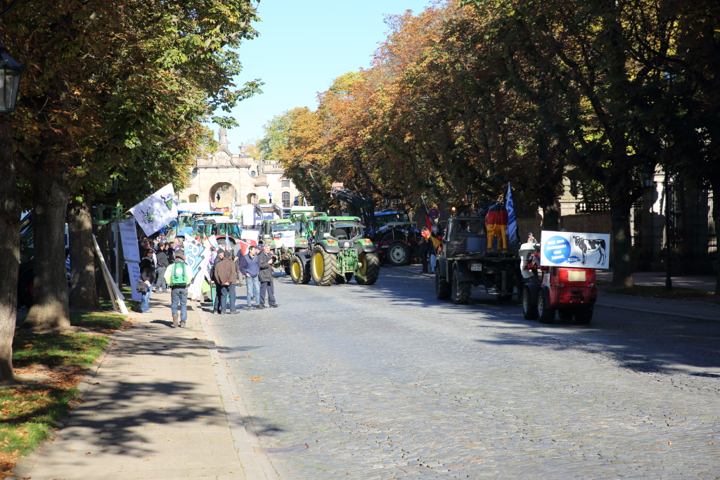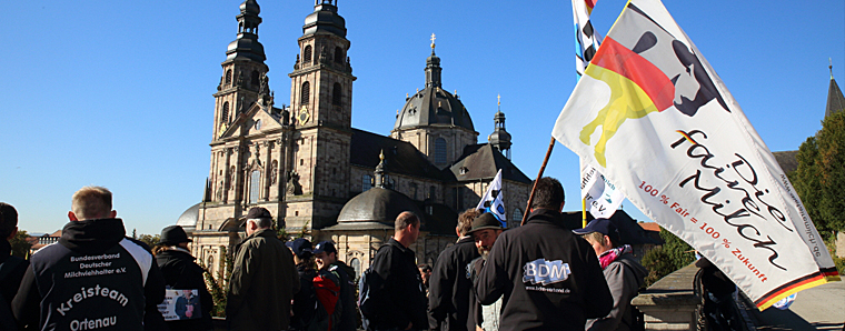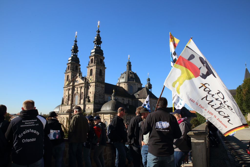 Fulda. 100 Schlepper und rund 300 Milchviehhalter des Bundesverbandes Deutscher Milchviehhalter aus dem ganzen Bundesgebiet, begleiteten am heutigen Freitag die Agrarministerkonferenz 2015 im osthessischen Fulda. Die Milchviehhalter machten in einer Kundgebung nachdrücklich deutlich, wie ernst es um ihre Höfe in der aktuellen Situation steht. Jeder Betrieb macht aktuell – mit jedem gemolkenen Liter Milch – Verlust. „Die Situation ist nicht länger durchzuhalten, es braucht daher greifbare Ergebnisse dieser Agrarministerkonferenz“ – wollten die Milchbauern den Ministern und insbesondere Bundesagrarminister Christian Schmidt (CSU) deutlich machen und enterten daher kurzerhand die Tagungsörtlichkeiten der Minister. Bundesagrarminister Schmidt traf sich nach der abschließenden Pressekonferenz mit einer Delegation des BDM für ein bilaterales Gespräch, um bestehende atmosphärische Störungen zu besprechen und den Weg für weitere Gespräche zu eröffnen. Auch die BDM-Bäuerinnen hatten noch einmal Gelegenheit, in einem Gespräch mit Gastgeberin Ministerin Priska Hinz (Bündnis 90/Die Grünen) ihre Situation zu schildern.