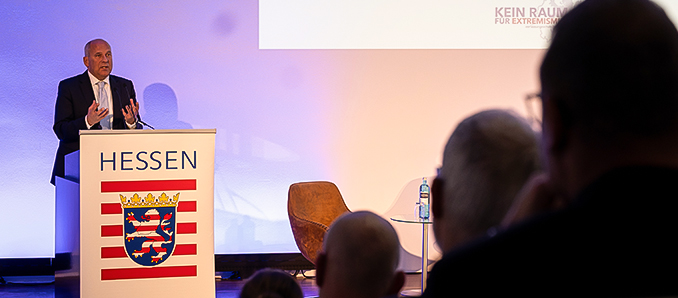 Hessens Innenminister Roman Poseck verwies auf die Belastungen durch internationale Konflikte wie den russischen Angriffskrieg gegen die Ukraine und den Nahostkonflikt. Sie wirkten sich unmittelbar auf die Sicherheitslage in Deutschland aus. Cyberattacken, Spionage, Sabotage und Desinformation nähmen spürbar zu. Ziel sei es, die Gesellschaft zu spalten und das Vertrauen in staatliche Institutionen zu erschüttern. Poseck betonte, dass Ablehnung der freiheitlich-demokratischen Grundordnung aus unterschiedlichen politischen und ideologischen Richtungen komme – von links, von rechts und aus islamistischen Milieus. Ausländische staatliche und staatsnahe Stellen sowie extremistische Gruppen verstärkten sich gegenseitig. Bots ermöglichten es zudem, automatisiert Inhalte zu verbreiten und Debatten zu manipulieren. Poseck appellierte an Politik und Bevölkerung, sich nicht spalten zu lassen: Der Staat sei wehrhaft, jedoch brauche es auch eine aktive Zivilgesellschaft, die sich täglich für die Demokratie einsetze.