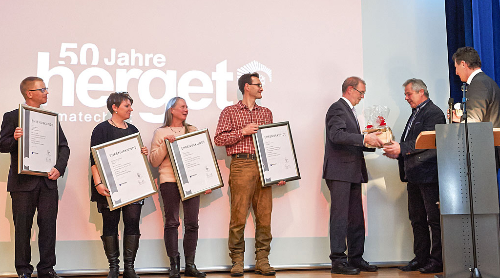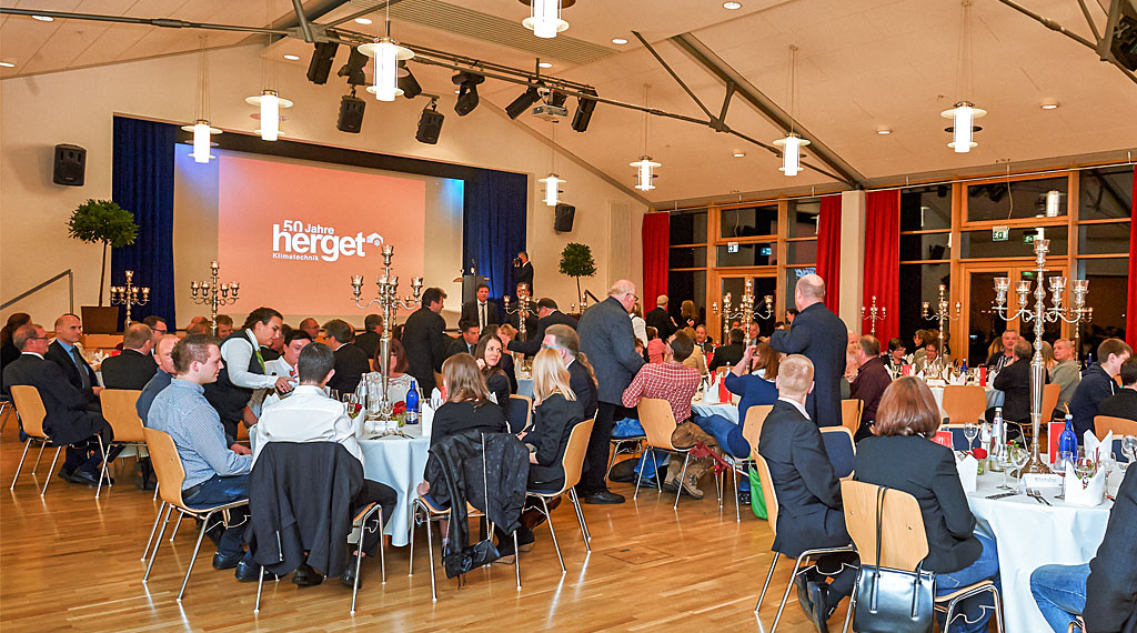 „goldene“ Firmenjubiläum feiern konnten, scheint neben dem Tatendrang der Gründerfamilie zudem ein Verdienst der Mitarbeiter zu sein. Das wusste auch Gastredner Landrat Bernd Woide geschickt in seine Ansprache einzubauen und ließ verlauten: „Das Klima ist für Sie, liebe Unternehmerfamilie Herget, ja von entscheidender Bedeutung. Doch in diesem Falle gleich zweifach.“ Denn neben der Produktion klimatechnischer Produkte sei auch das gute Klima innerhalb der Firma ein Erfolgsfaktor für Unternehmen, wie das der Herget GmbH. Solche Firmen seien verantwortlich für das gute Standing, welches die Region Fulda im nationalen Vergleich habe. Und so schlussfolgerte Woide: „Danke, dass Sie 50 Jahre entscheidend zum Vorantreiben unserer Region beigetragen haben – Sie sind ein Paradebeispiel für Unternehmenskultur.“