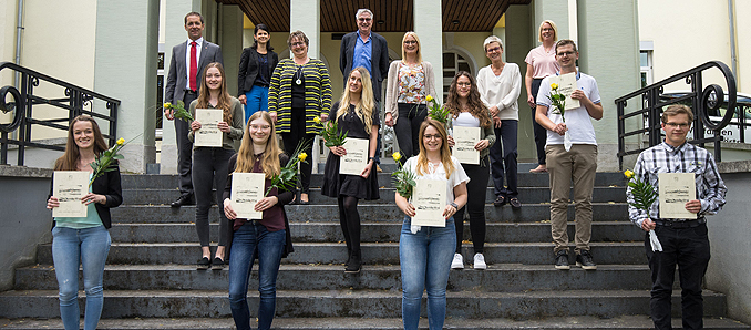 Als Jahrgangsbeste erhielt Kim Glaser neben ihrem Zeugnis ein kleines Geschenk. Voller Stolz wegen der zahlreichen guten und sehr guten Ausbildungsabschlüsse wandte sich Tanja Licht ein letztes Mal in ihrer Rolle als Ausbildungsleiterin an die ehemaligen Azubis: „Für die Zukunft wünscht die Kreisverwaltung Ihnen nur das Beste. Ich hoffe, dass Sie alle den für sich richtigen Platz im Leben finden. Denken Sie das ein oder andere Mal an uns und Ihre Ausbildung zurück.“