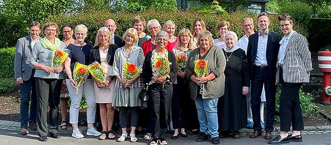 Ebenfalls herzliche Glückwünsche überbrachten Sr. Eva-Maria Martin (Konventoberin am Herz-Jesu-Krankenhaus), Sabine Matulenski (Pflegedirektorin), Dr. med. Rüdiger Hacker (Ärztlicher Direktor), Matthias Färber (Verwaltungsleiter) und Heiko Richter (Personalleiter). Gemeinsam nutzte die Geschäftsführung mit der Krankenhausleitung die Gelegenheit, auf den Werdegang und die Verdienste in den unterschiedlichen Abteilungen der zuverlässigen Mitarbeitenden zurückzublicken.
