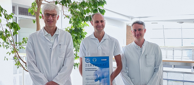 Für die optimale Versorgung von Hernien-Patienten sorgt die Fachabteilung für Allgemein-, Viszeral- und minimal-invasive Chirurgie am Herz-Jesu-Krankenhaus Fulda, die nun von der Deutschen Gesellschaft für Allgemein- und Viszeralchirurgie (DGAV) und der Deutsche Herniengesellschaft (DHG) als Kompetenzzentrum für Hernienchirurgie mit dem Qualitätssiegel ausgezeichnet und zertifiziert worden ist – als einziges Krankenhaus der Region neben dem Klinikum Bad Hersfeld und dem Marienkrankenhaus Kassel. Um die Auszeichnung zu erhalten, musste die chirurgische Fachabteilung neben Indikationsabläufen, Aufklärungsprozessen, eine Mindestanzahl an verschiedenen Hernien-Operationen nachweisen und die entsprechend hohe Qualität der Operationen er-füllen. „Brüche“ (Hernien) sind Ausdruck einer Schwäche der Bauchwand bzw. des Zwerchfells mit sehr unterschiedlichen Ursachen. Infolgedessen kommt es zum Austritt von Gewebsanteilen, die oft als Bruchsack sichtbar oder tastbar sind. Sie werden vom Betroffenen manchmal als ein Fremdkörper oder Schmerz wahrgenommen, insbesondere unter körperlicher Belastung. In Deutschland werden jährlich mehr als 275.000 Leistenbruch- und über 50.000 Narbenbruchoperationen durchgeführt.