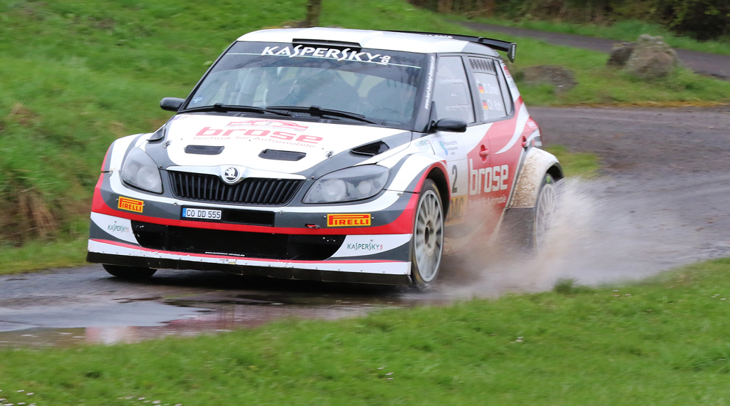 Top-Favorit Fabian Kreim führte bis zur fünften Prüfung das Feld an. Nach einem Fahrfehler, wobei er den Kühler am Skoda Fabia R5 beschädigte, konnte er zwar noch weiterfahren, gab aber später auf. „Wir haben auf der sechsten Prüfung schon viel Zeit verloren und mussten Wasser nachfüllen. Um den Motor nicht nachhaltig zu schädigen, haben wir den Wagen vorsichtshalber abgestellt.“ Für Yannick Neuville (Skoda Fabia 207 S2000, Belgien), der lange Zeit mit Dinkel um die zweite Position fightete, reichte es nach einem Ausrutscher auf der Prüfung in Schlitz noch für eine Top10 Platzierung.