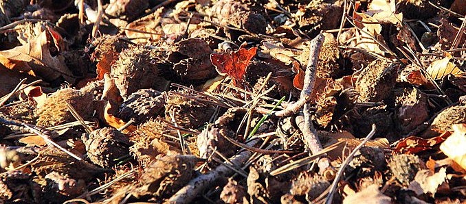 Aber nicht nur die Försterinnen und Förster freuen sich über die Samen, auch viele Tierarten finden in diesem Herbst einen reich gedeckten Tisch. Vögel, Rehe und Wildschweine, Mäuse, Eichhörnchen oder Eichelhäher fressen gern Bucheckern. Mit 40 Prozent Fettgehalt eine willkommene Stärkung vor dem kalten Winter. Während ein Buchfink nach 14 Bucheckern pro Tag satt auf einem Ast schlummert, vertilgt ein Eichhörnchen im Herbst über 200 pro Tag und versteckt ebenso viele als Wintervorrat im Waldboden. In Notzeiten waren Bucheckern auch bei Menschen in aller Munde. Das ausgepresste Öl nutzte man beim Kochen oder Braten. Sie wurden geröstet und gemahlen sogar als Mehl oder Kaffeeersatz verzehrt.