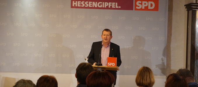 Weiter sagte er: „Wir Sozialdemokraten sind ja gelegentlich ins Jammern verliebt. Ich bin der Meinung - das, was wir bisher für dieses Land geleistet haben und das, was wir noch leisten wollen, kann man auch positiv darstellen.“ Mit dem Blick auf die kommenden Kommunalwahlen stellte Rudolph heraus: „Wir Sozialdemokraten in Hessen stellen 12 von 21 Landrätinnen und Landräte, 9 von 12 Oberbürgermeistern und die zweitgrößte Gruppe der kreisabhängigen Bürgermeisterinnen und Bürgermeister. Und auf dieses Fundament können wir bauen.“ Denn: „Die Kommune – gelegentlich belächelt - ist die wichtigste Ebene, die man zur Stabilisierung der Demokratie brauche. Abschließend betonte Rudolph: „Das, was Ehrenamt leistet, muss vor Ort unterstützt werden. Und aus diesem Grund können wir auch selbstbewusst in diese Kommunalwahl gehen.“
