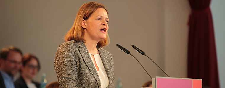 Das Kernthema der SPD sei die Bildung von der Kinderkrippe bis zum Abschluss der Ausbildung oder des Studiums, so Generalsekretärin Faeser. Die Vorschläge der SPD zu vollständigen Abschaffung der Betreuungsgebühren für Kinder, die noch nicht in die Schule gehen, seien gekoppelt mit solide finanzierten Plänen zur nachhaltigen Entlastung der Kommunen von den Betriebskosten der Kindertagesstätten. „Eigentlich ist unser Plan ganz einfach: Wenn die Eltern es wollen, ist für jedes Kind Platz für eine liebevolle, pädagogisch qualifizierte Betreuung, die nicht bezahlt werden muss – fertig!“, so Nancy Faeser. An den Schulen brauche es mehr Lehrerinnen und Lehrer und erhebliche Investitionen in die Schulgebäude. „Wir möchten keine 30 Grundschüler in einer Klasse und keine 35 Gymnasiasten, wir wollen, dass bröckelnde Turnhallen und müffelnde Schulklos verschwinden. Dazu muss man in Köpfe und in Beton investieren – aber wenn man es nicht tut, dann macht man die Chancen einer ganzen Generation kaputt“, sagte Nancy Faeser.