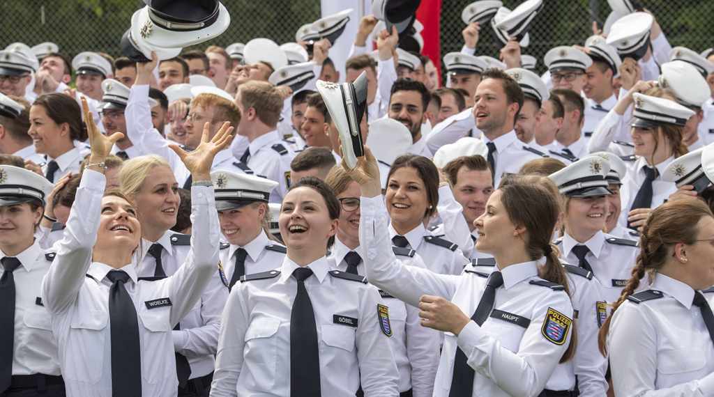 Am „Tag der Polizei“ hat Innenminister Peter Beuth gemeinsam mit Ministerpräsident Volker Bouffier rund 890 Polizeikommissaranwärterinnen und -anwärter auf dem Hessentag vereidigt. Es ist der zweitgrößte Jahrgang in der Geschichte der hessischen Polizei. Im vergangenen Jahr wurden rund 1.100 Anwärterinnen und Anwärter vereidigt.