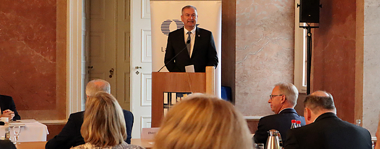 Der Marmorsaal im Fuldaer Stadtschloss war zwei Tage lange in der Hand der hessischen Landrätinnen und Landräte. Der Hessische Landkreistag (HLT) mit Präsident Landrat Bernd Woide an der Spitze hatte zur Präsidiumssitzung nach Fulda eingeladen. Am Tag darauf befasste sich die Mitgliederversammlung des HLT mit dem Jahresabschluss 2017 und dem Haushaltsplan 2018, bevor in der Jahrestagung zum Jubiläum „70 Jahre Hessischer Landkreistag“ der Präsident des hessischen Landesamtes für Verfassungsschutz, Robert Schäfer, die Festrede hielt. Unter dem Titel „Sicherheit in Hessen – Aktuelle Situation und Wandel der Lage im Laufe der Zeit“ gab der gebürtige Bad Hersfelder interessante Einblicke in seine Arbeit. Die Kreise wurden durch die Landräte, Ersten Kreisbeigeordneten und Kreistagsvorsitzenden vertreten. Außerdem nahmen die Ehrenmitglieder des HLT sowie der SparkassenGiroverband und der Landeswohlfahrtsverband als kooptierte Mitglieder teil. +++ pm