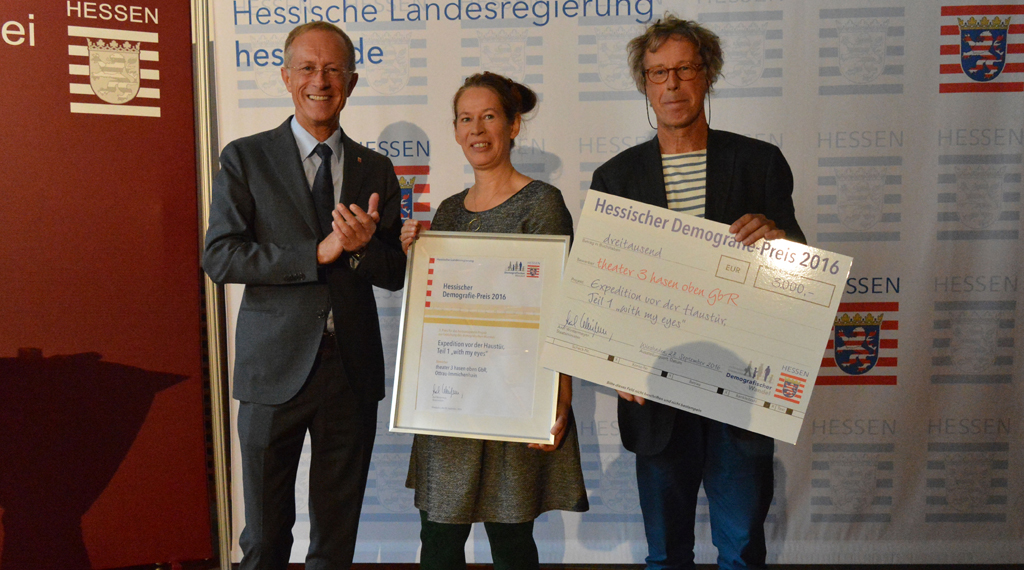 Das Projekt „Expedition vor der Haustür, Teil 1 ‚with my eyes“ des „theaters 3 hasen oben“ arbeitet den demografischen Wandel künstlerisch in Filmen, Workshops, Schau- und Rollenspielen sowie in einer Sommer-Werkstatt auf. „Kultur ist ganz eng mit Lebensqualität verknüpft. Mit dem Konzept ‚Expedition von der Haustür‘ erforschen vor allem Jugendliche die sich verändernden Lebensumstände im eigenen Umfeld und schärfen ihre Beobachtungsgabe. So kommen sie ihrer eigenen Geschichte und der der Schwalm auf die Spur und stärken ihre Verbundenheit zur Heimat“, sagte Axel Wintermeyer.