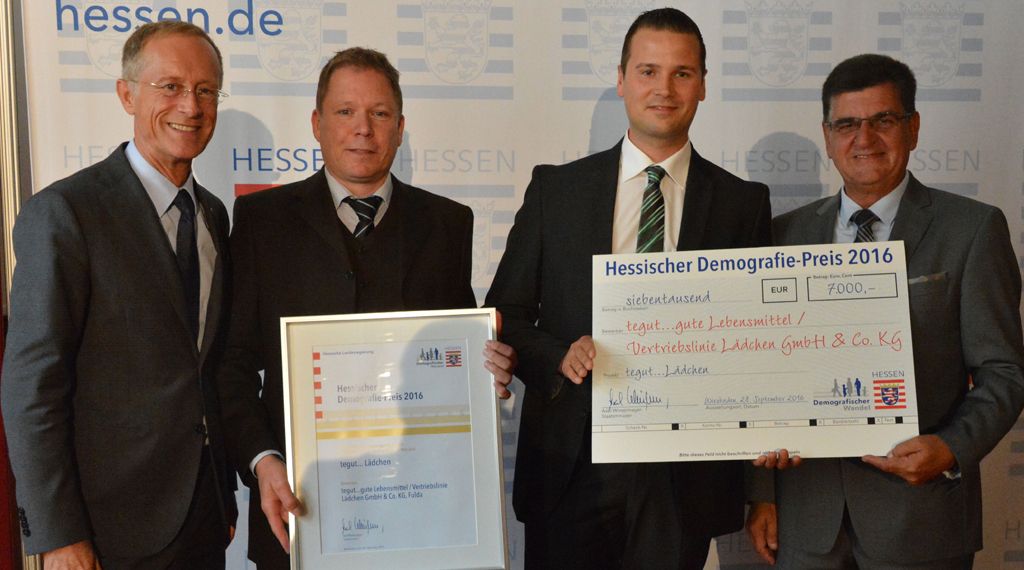 Das zweitplatzierte Konzept „tegut…Lädchen“ soll den fast ausgestorbenen Tante-Emma-Läden zu einer Renaissance verhelfen. „Die Menschen wollen weiterhin auf dem Land leben. Dafür muss die dörfliche Infrastruktur intakt sein. Die Lebensmittelversorgung spielt eine wichtige Rolle“, sagte der Demografie-Beauftragte. Die tegut... Lädchen seien aber viel mehr als ein Ort, wo Nahrungsmittel gekauft werden können, so Axel Wintermeyer. „Die Lädchen sind nicht nur ein Treffpunkt im Dorf. Zu dem Konzept gehört auch die Anstellung von Menschen mit Handicap, die so am Arbeitsleben teilhaben. Gleichzeitig wird deutlich, dass sich auch wirtschaftlich handelnde Unternehmen der Herausforderung des demografischen Wandels annehmen“, sagte der Minister. Das Preisgeld spendet das Unternehmen an eine soziale Einrichtung.
