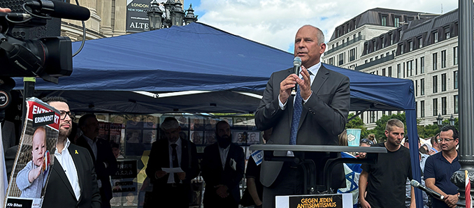 In seiner Rede ging Poseck auch auf die Demonstration „United4Gaza“ vom Vortag ein, bei der es zu massiven Zwischenfällen gekommen war. Nach Angaben des Ministers nahm die Polizei 23 Strafanzeigen auf, darunter 18 Fälle des Verwendens von Kennzeichen verfassungswidriger Organisationen und zwei Fälle von Volksverhetzung. Ein Redner hatte den Holocaust und den Hamas-Anschlag vom 7. Oktober 2023 verharmlost, woraufhin die Polizei ein Redeverbot aussprach und den Mann festnahm.