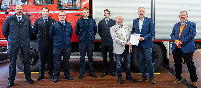 Für ein neues Tanklöschfahrzeug erhält die Gemeinde Hilders. 82.500 Euro aus dem Kreisausgleichsstock. Landrat Bernd Woide hat den Förderbescheid an die Feuerwehr und die Gemeinde überbracht. „Es ist ein wichtiger Tag für die Freiwillige Feuerwehr Hilders aber auch für den Landkreis Fulda. Eine Feuerwehr ist nicht nur für den eigenen Ort da, sondern auch für umliegenden Gemeinden. Feuerwehren kenne keine Grenzen und halten zusammen. Deshalb unterstützt der Landkreis Fulda die Investition in das neue Tanklöschfahrzeug der Gemeinde Hilders und ich freue mich sehr, dass ich einen Zuwendungsbescheid in Höhe von 82.500 Euro an die Gemeinde überbringen kann“, sagt Landrat Bernd Woide. Er dankte auch allen Ehrenamtlichen der Feuerwehr, die sich rund um die Uhr engagieren und immer auf Abruf zur Verfügung stehen. „Das ist nicht selbstverständlich“, so Woide. Große Freude herrschte auch bei der Feuerwehr und vor allem bei den Feuerwehrkameradinnen und Feuerwehrkameraden. „Wir sind dem Landkreis dankbar für die Förderung, da ohne das Geld solche Anschaffungen für die Gemeinde nur schwer zu stemmen wären“, sagt Karl-Otto Wagner, Beigeordneter der Gemeinde Hilders. Durch das breite Spektrum der Geräte in Hilders ist die Feuerwehr nicht nur für die Gemeinde, sondern auch darüber hinaus regional von großer Bedeutung. „Uns ist es deshalb wichtig, unsere Feuerwehr immer auf einem ausreichend hohen und neuen Stand zu halten. Das neue Tanklöschfahrzeug wird die bestehende Flotte perfekt ergänzen“, so Wagner. +++ pm