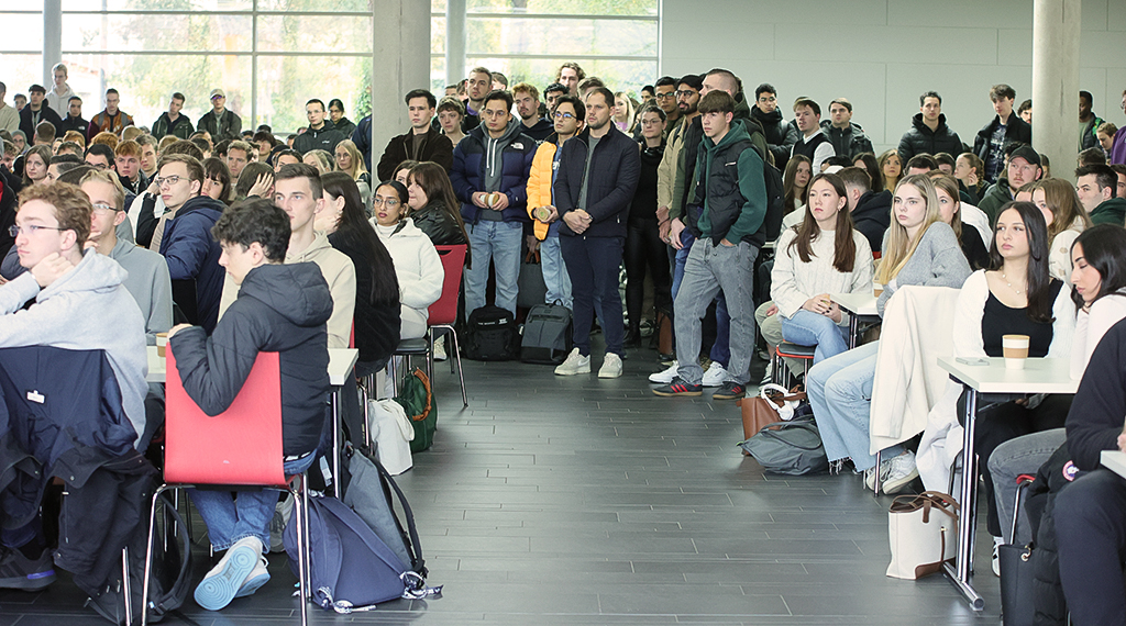 Neben dem Hochschulpräsidenten begrüßten auch Vertreter des Allgemeinen Studierendenausschusses (AStA) und des Studierendenwerks die neuen Studierenden.