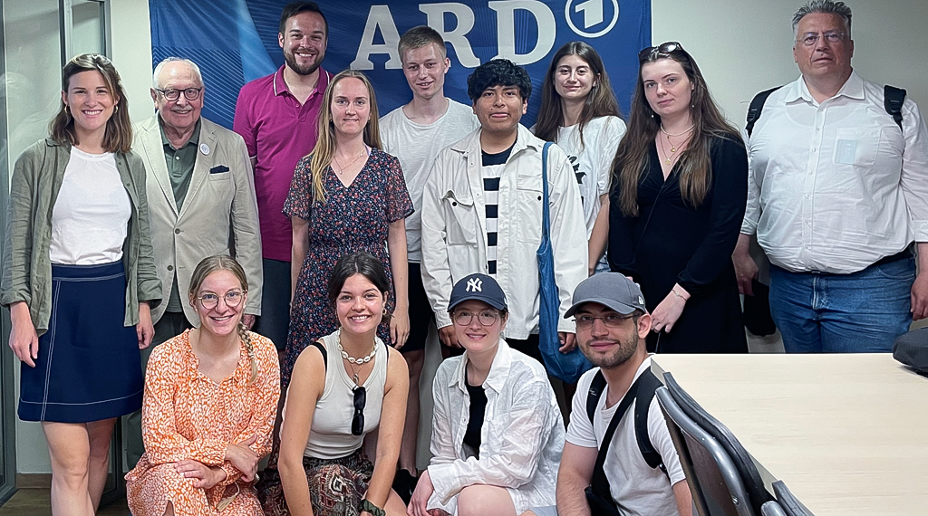 Die aktuelle politische Situation in Israel bestimmte das Gespräch im ARD-Studio mit der Auslandsredakteurin Sophie von der Tann. Mit ihren Insidererfahrungen ließ sie die Fuldaer Gäste in den journalistischen Alltag und die komplexe politische Situation im Nahen Osten blicken. Natürlich interessierte auch der Weg der Redakteurin aus Tann nach Israel. Am letzten Abend zeigte die Pride Parade in Tel Aviv die Weltoffenheit dieser Metropole am Mittelmeer, die Gründungsstadt des Staates Israel im Jahre 1948. Für alle Studierenden war es der erste Israelbesuch. Es ist zu wünschen, dass weitere folgen, so die beiden Organisatoren. Überschattet war die Exkursion von den Kontroversen um die Beschneidung der Aufgaben der israelischen Justiz in ihrer judikativen Richterfunktion durch die Regierung Benjamin Netanjahu. +++ pm