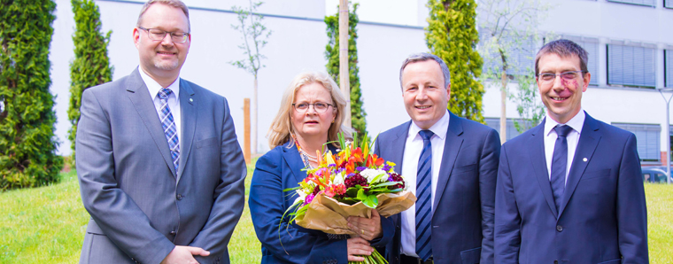 Hochschulpräsident Prof. Dr. Karim Khakzar beglückwünschte die Vizepräsidentin zu ihrer Wiederwahl. Am 1. September dieses Jahres wird Prof. Dr. Kathrin Becker-Schwarze ihre zweite Amtszeit beginnen. +++