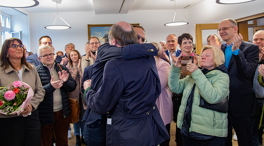 Man sieht ihm den Stolz an, aber auch die Erleichterung. Nach dem ersten Wahlgang habe er noch gedacht: „Alles über 40 Prozent ist okay.“ Dass es nun fast 60 Prozent werden, wertet er als starkes Signal. Sein Dank gilt den Wählern, den Ehrenamtlichen, der Verwaltung und seinem Team: „Da hängt ein Haufen Arbeit dahinter.“ Besonders hebt er die „bärenstarke CDU“ vor Ort hervor, die ihm zusätzlichen Rückenwind gegeben habe.