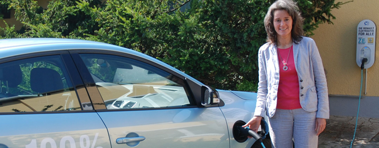 Geht mit gutem Beispiel voran: Geschäftsführerin Sonja Karlein an der hauseigenen Elektro-Tankstelle.