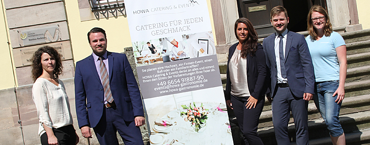 Mona Stammler, Bereichsleiterin Unternehmenskommunikation „HOWA Gastronomie & Hotel Services“, Mario-Sebastian Fertig, geschäftsführender Gesellschafter „HOWA Management GmbH“, Die künftige Direktorin „Die Hessenpark Gastgeber“, Stephan Thomas Krause, geschäftsführender Gesellschafter „HOWA Management GmbH“ und Anja Lang, Betriebsleiterin „Die Eisheiligen“ (v.l.)