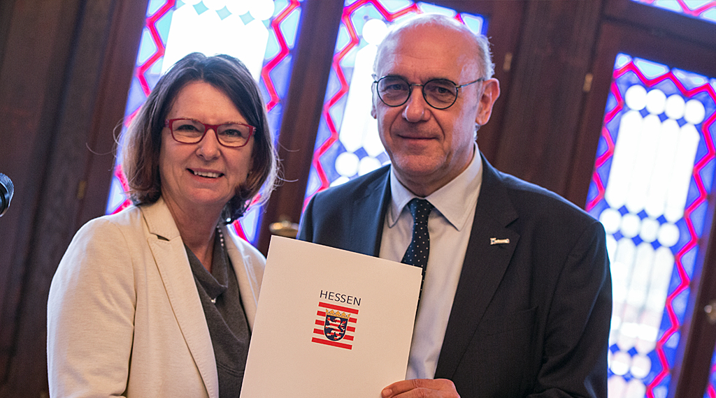 Hünfeld. Am Mittwoch übergab Priska Hinz (Bündnis 90/ Die Grünen), Hessische Staatsministerin für Umwelt, Klimaschutz, Landwirtschaft und Verbraucherschutz, im Rathaussaal Hünfeld, den Bewilligungsbescheid zur Aufnahme in das Förderprogramm „Die Soziale Stadt“ für das Gebiet Nord-Ost in Hünfeld an den Bürgermeister der Stadt Stefan Schwenk (CDU). Die Stadt im Landkreis Fulda hatte sich um den Zuwendungsbescheid im Kontext des Förderprogrammes „Die Soziale Stadt“ beworben.