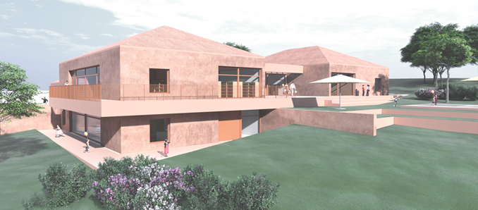Nach den Plänen soll das neue Gebäude, das hinter dem Bedarfsparkplatz oberhalb des Friedhofs entstehen wird, aus drei zusammenhängenden Einzelgebäuden bestehen, die jeweils durch einen Flachbau miteinander verbunden sind. Das erste Gebäude wird nicht nur den Turnraum, ein Bistro und die Personalräume aufnehmen, sondern auch den Zugang zu der Einrichtung. Im zweiten Gebäude werden vier Gruppen mit Kindern über drei Jahre aufgenommen und im dritten Gebäude mit leicht versetzten Etagen zwei Gruppen für Kinder unter drei Jahren. Die drei Gebäude erhalten jeweils Walmdächer und sind in verschiedenen Ebenen angeordnet, um sich dem vorhandenen Gelände optimal anzupassen. Die Bruttogeschossfläche der neuen Kindertagesstätte wird etwa 1600 Quadratmeter betragen. Für das Außengelände stehen insgesamt rund 3200 Quadratmeter zur Verfügung.