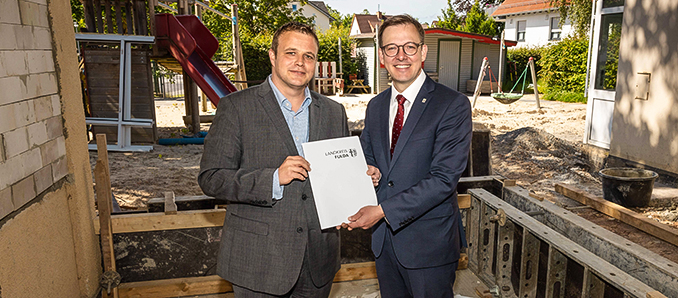 Die Stadt Hünfeld investiert auch in diesem Jahr kräftig in den Ausbau der Kinderbetreuung und wird dabei durch den Landkreis Fulda unterstützt: Vize-Landrat Frederik Schmitt überbrachte jetzt die Zusage über 95.800 Euro aus dem Kreisausgleichsstock an Bürgermeister Benjamin Tschesnok. Diese Summe wird in den Um- und Ausbau der katholischen Kindertagesstätte St. Ulrich fließen.