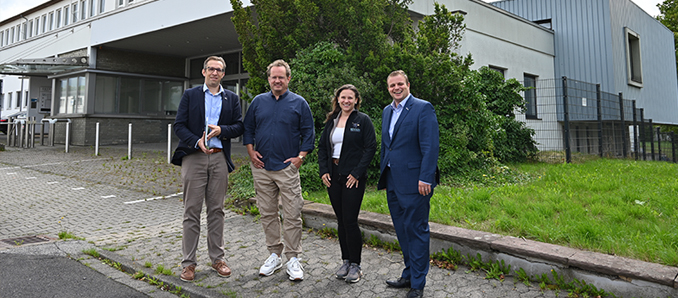 Ab 2024 wird wieder Leben in die frei gewordenen Liegenschaften der Wella in Hünfeld einziehen. Die Firma Revikon aus Gießen steht für 70 Prozent der Flächen vor dem Vertragsabschluss. Dies machten Geschäftsführer Daniel Beitlich und seine Mitarbeiterin Alisha Weitze bei einem Ortstermin mit Bürgermeister Benjamin Tschesnok und Bauamtsleiter Uwe Jahn deutlich. Revikon hatte die freigewordenen Liegenschaften des Haarkosmetikherstellers in den vergangenen zwei Jahren übernommen. Der mittlere Teil des Areals wird weiterhin von Wella genutzt und im hinteren Bereich hatte ein benachbartes Unternehmen Hallen sowie die Stadt Hünfeld freie Flächen erworben.