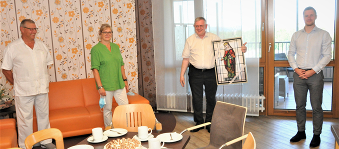 Seit mehr als einem Vierteljahrhundert steht Pater Alois Schmidpeter OMI als Krankenhausseelsorger Patienten, Angehörigen und Mitarbeiter als wertvoller Ansprechpartner mit einfühlsamer und tröstender Begleitung zur Seite. Zu seinem 70igsten Geburtstag gratulierte Klinikgeschäftsführer Sebastian Mock, Ärztlicher Direktor Dr. Andreas Rügamer und Pflegedirektorin Alexandra Witschak.