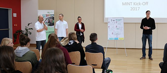 Zu den bereits im vergangenen Jahr beteiligten Unternehmen (Hartmann Spezialkarosserien, Umweltdienste Bohn, STI-Group, Grebenauer Metallbau Schreiner, Duoplast, Diegel Creative Coatings) kamen in diesem Schuljahr noch MRH Trowe, die Eichhof-Stiftung und R+S Solutions hinzu, weitere Kontakte sind in Vorbereitung. „Die hohe Beteiligung der Unternehmen zeigt uns, dass wir mit der Teilnahme an diesem Projekt einen Nerv getroffen haben und uns in einer richtigen Win-Win-Situation befinden“, so Dersch. „Eine solch hohe Zahl an Kooperationspartnern ist durchaus ungewöhnlich“, befand Alexander Bork, der gemeinsam mit Carmen Mäder und Nino Frignani im Auftrag von „I am MINT“ am Dienstagvormittag nach Lauterbach gereist war, um mit knapp vierzig an dem Projekt interessierten Schülerinnen und Schülern der 8. und 9. Klassen den Start der zweiten Runde auf den Weg zu bringen und vorzubereiten. Dazu hatten sie zum einen ganz viel Information rund um Intension und Ablauf des Projekts mitgebracht, sie übten erste wichtige Kompetenzen, die in den MINT-Bereichen benötigt werden und bereiteten einen Fragenkatalog für die Besuche bei den beteiligten Firmen vor.