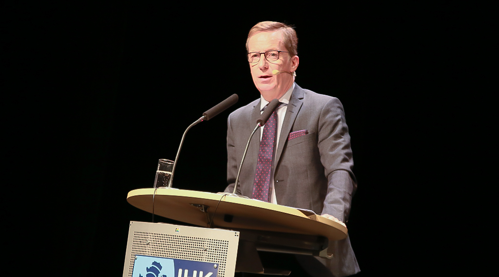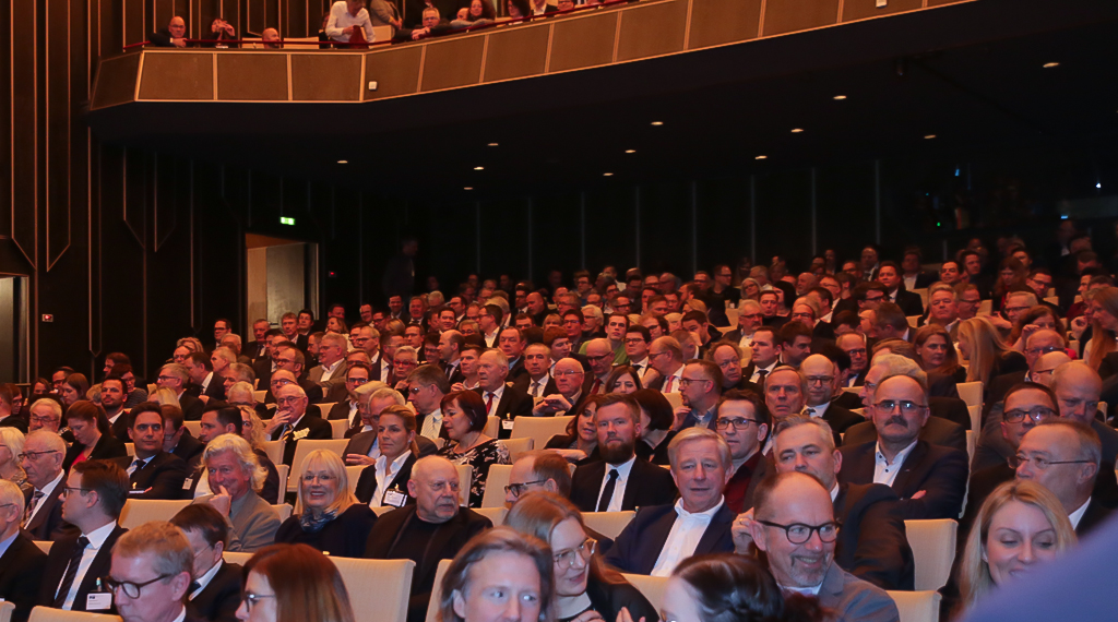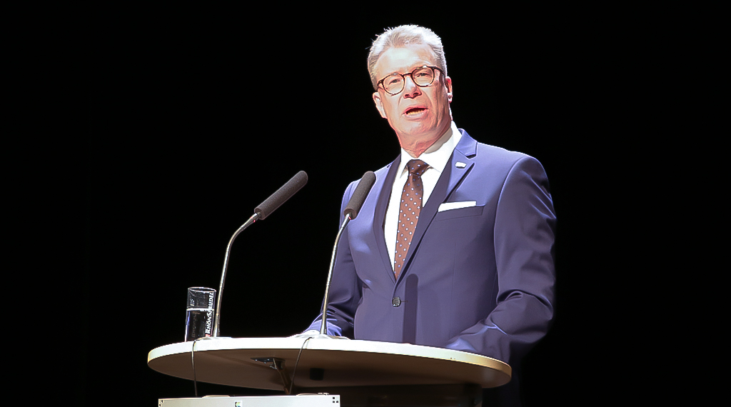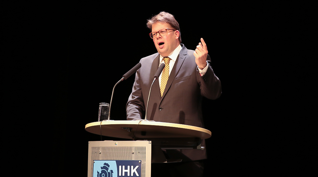 In seiner Rede ging IHK-Präsident Dr. Christian Gebhardt auf die derzeitige wirtschaftliche und politische Lage ein und musste feststellen: „Keine der aktuellen Krisen ist wirklich gelöst, weder der Handelskonflikt zwischen China und den USA, noch die Flüchtlingsfrage auf europäischer Ebene oder die konkrete Ausgestaltung des Brexits.“ Bezug genommen auf die Klimabewegungen im vergangenen Jahr sagte der IHK-Präsident: „Wir müssen aufpassen, dass wir nicht eines der Herzstücke unserer Industrie, die Automobilindustrie, opfern.“ Der gleiche Tenor war einen Tag zuvor bei dem Jahresempfang der Gemeinde Eichenzell, einer Kommune etwa 12 Kilometer südlich des Oberzentrums, angeklungen. „Die konjunkturelle Hängepartie wird wohl auch in 2020 weitergehen“, prognostizierte Gebhardt. „Allerdings sollte man in einigen Branchen, so etwa im Maschinenbau, aufpassen und nach den Worten des Präsidenten des Verbandes Deutscher Maschinen- und Anlagenbaus (VDMA) Carl Martin Welcker – eher nahe am Ausgang tanzen. Der Maschinenbau leidet unter der schwindenden Nachfrage aus der Autoindustrie und der Unsicherheit auf den wichtigen Exportmärkten, Großbritannien, China und den USA.“