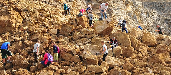 Großenlüder/ Müs. Eine Sprengung im Steinbruch miterleben und anschließend nach fossilen Schätzen suchen: Dieses besondere Ferienprogramm konnten jetzt rund 30 Schulkinder bei den Zement- und Kalkwerken Otterbein erleben. In Begleitung der Mineralien- und Fossilienfreunde Rhön-Vogelsberg haben die Sprösslinge aus sicherer Entfernung eine Sprengung im Steinbruch verfolgt. Ausgerüstet mit festem Schuhwerk, Hammer und Eimer, wurde direkt im Anschluss das Gestein begutachtet. Mineralienfreund Siegfried Pfaff hielt wissenswerte Informationen über die gefundenen Gesteine bereit. Indem sie selbst aktiv wurden, lernten die begeisterten Teilnehmer spielerisch verschiedene Mineralien kennen. Die gefundenen Schätze konnten die Nachwuchsgeologen mit nach Hause nehmen. Bereits seit sechs Jahren begleitet Klaus Kulozik, Produktionsleiter bei den Zement- und Kalkwerken, die Mineralienexkursion und ist von dem großen Interesse der Kinder begeistert: „Es ist wirklich erstaunlich, wie gut die Mädchen und Jungen über verschiedene Mineralien- und Gesteinsarten informiert sind und mit welch großem Einsatz sie das gesprengte Material begutachtet haben.“ +++ fuldainfo