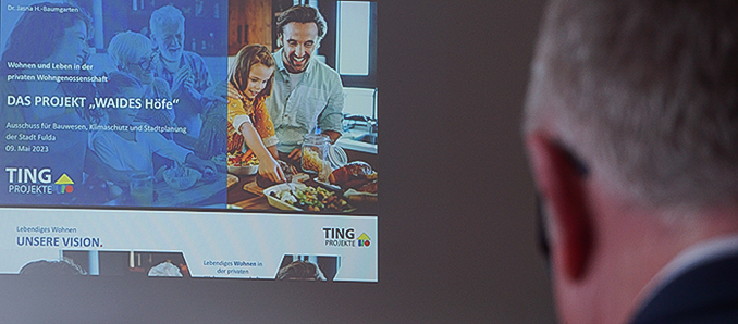 Ausschussvorsitzender Michael Ruppel ging auf die enge Verzahnung zwischen Stadt Fulda und den jeweiligen Genossenschaften, die auf dem Areal Waidesgrund aktiv sind, ein und dankte zunächst Frau Bödeker und ihrem Team vom Stadtplanungsamt sowie der darin eingebundenen Bauaufsicht. In diesem Zusammenhang und im Hinblick auf die Ausführungsplanung in allen drei Projekten um das Gebiet Waidesgrund sprach Ruppel von einem entstehenden „Erfolgsprojekt“. Daneben wünschte er was sonst als Christdemokrat eher nicht so häufig vorkommt der Firma TING Projekte „viele zufriedene Genossen“.