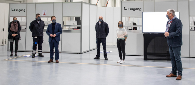 Heute haben Landrat Bernd Woide und Vize-Landrat Frederik Schmitt das neu eingerichtete Impfzentrum in der Waideshalle vorgestellt. Frederik Schmitt gab zuvor einen Überblick über die weiterhin angespannte Pandemie-Situation im Landkreis Fulda. Er kündigte in diesem Zusammenhang eine Allgemeinverfügung an, die unter anderem eine Ausgangssperre zwischen 21 Uhr und 5 Uhr vorsieht, sowie ein Alkoholverbot im öffentlichen Raum. Landrat Woide erläuterte, dass die baulichen Vorkehrungen des Impfzentrums getroffen worden seien. Dafür dankte er dem Organisationsteam aus der Verwaltung. Desweiteren erklärte er den geplanten Ablauf der Impfungen. Bei dem anschließenden Rundgang konnten die eingerichteten Impfräume besichtigt werden. Zum gegenwärtigen Zeitpunkt gehe man davon aus, dass zum Ende Dezember der Impfstoff zugelassen werde. Danach richte sich dann der Start der Impfungen. +++