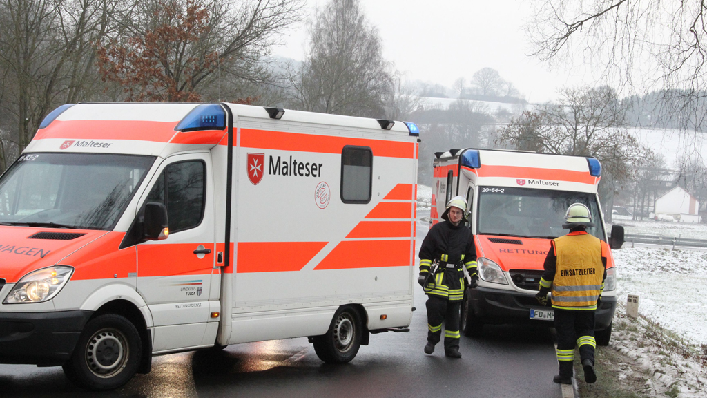 Kleinlüder. Sehr schwere Verletzungen erlitt ein 80jähriger Fahrer aus Hosenfeld am Mittwochvormittag. Er befuhr mit seinem Opel die Landesstraße von Kleinlüder in Richtung Hainzell. Im Verlauf einer langgezogenen Rechtskurve geriet er um 10:40 Uhr auf winterglatter Fahrbahn auf die Gegenfahrbahn. Es kam zum Frontalzusammenstoß mit dem entgegenkommenden VW eines 54jährigen Mannes aus Großenlüder. Beide Fahrer wurden verletzt. Der Unfallverursacher wurde auf die Intensivstation am Klinikum Fulda verlegt, der Fahrer des entgegenkommenden Pkw wurde mit leichten Verletzungen ins Herz-Jesu-Krankenhaus gebracht. Der Gesamtschaden an beiden Pkw wird auf 10.000 Euro geschätzt, sie mussten abgeschleppt werden. +++ fuldainfo | sw