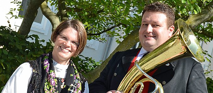 Hofbieber/Fulda. Von Kindertagen an gehört Musik zur Freizeit von Frank Goldbach und Michaela Scheuring. Für die Mitarbeiter der Kreisverwaltung ist diese Leidenschaft eng verwoben mit der Trachtenkapelle Elters/Rhön – und das bedeutet beiden mehr als nur zu musizieren. „Elters ist ein 650-Seelen-Dorf, da ist das Freizeitangebot nicht so groß“, erzählt Michaela Scheuring mit einem Schmunzeln. „Fußball, Feuerwehr und Musik – und da für Mädchen früher zwei davon nicht in Frage kamen, hab‘ ich mich für Musik entschieden“, sagt die 40-jährige Verwaltungsfachwirtin, die zuletzt im Fachdienst Wasser und Bodenschutz tätig war und derzeit ihre Familie mit drei Kindern managt. Als sie neun Jahre alt ist, lernt sie Klarinette spielen und folgt Bruder und Vater in die Kapelle.