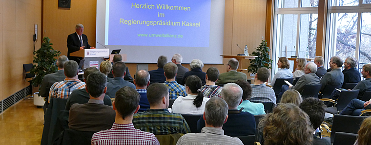 Kassel. Im Rahmen der 29. Informationsveranstaltung der Umweltallianz Hessen im Regierungspräsidium Kassel konnte Regierungspräsident Dr. Walter Lübcke zahlreiche interessierte Besucher begrüßen. Die Veranstaltung, die sich vornehmlich mit der Genehmigung und Überwachung von Biogas- und Tierhaltungsanlagen befasst, soll sachkundige und realitätsnahe Informationen bezüglich der umweltverträglichen Wirtschaftsentwicklung vermitteln.