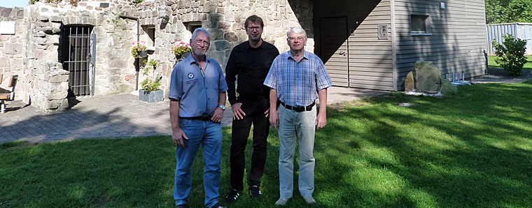Bernd Günder, Jürgen Krieg und Michael Mayer (von rechts) sind stolz auf das gelungene Zusammenspiel zwischen neuzeitlichem Gebäude und historischer Anlage.