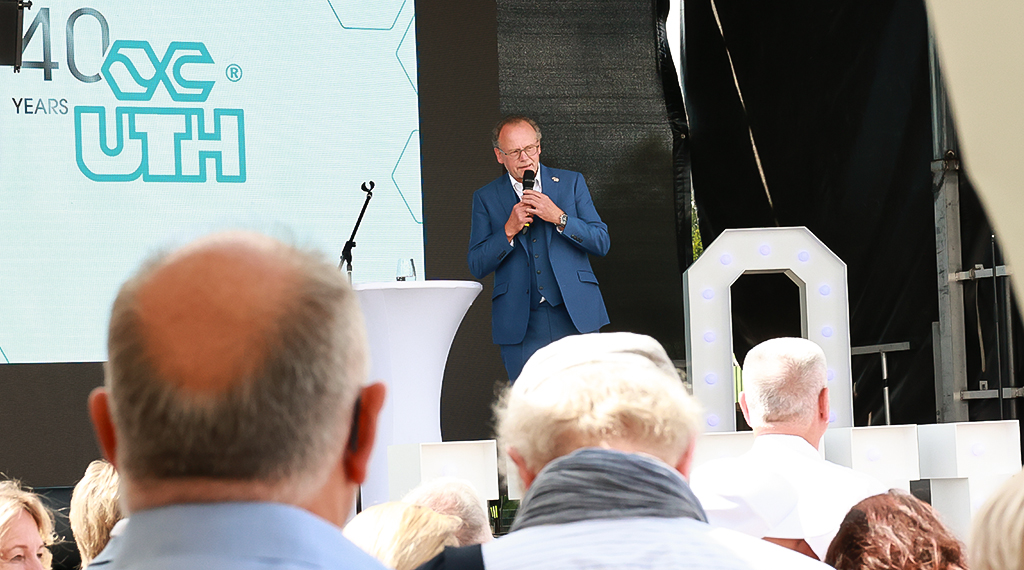 Die Glückwünsche der Stadt überbrachte Bürgermeister Dag Wehner (CDU), der ebenso die Grüße des aktuell urlaubsbedingt verhinderten Fuldaer Oberbürgermeisters, Dr. Heiko Wingenfeld (CDU), überbrachte. „Es ist uns als Stadt eine große Freude und Ehre, die UTH GmbH Fulda hier an diesem Standort zu wissen“, sagte Bürgermeister Wehner. „40 Jahre Firmenbestehen ist ein Aushängeschild, auf das Sie, lieber Herr Uth, zu Recht stolz sein dürfen. Viele Ihrer Attribute sind heute bereits angeklungen. Von Anfang an war der Nachhaltigkeitsgedanke Bestandteil Ihrer Unternehmensphilosophie. Mit Standorten in den USA, Brasilien, Japan, China, Südkorea, Indien, Großbritannien und Italien tragen Sie maßgeblich zur globalen Versorgung in Ihrem speziellen Segment bei. Der große unternehmerische Erfolg basiert sicherlich auf unternehmerischer Kontinuität, Durchhaltevermögen und Innovationskraft.“