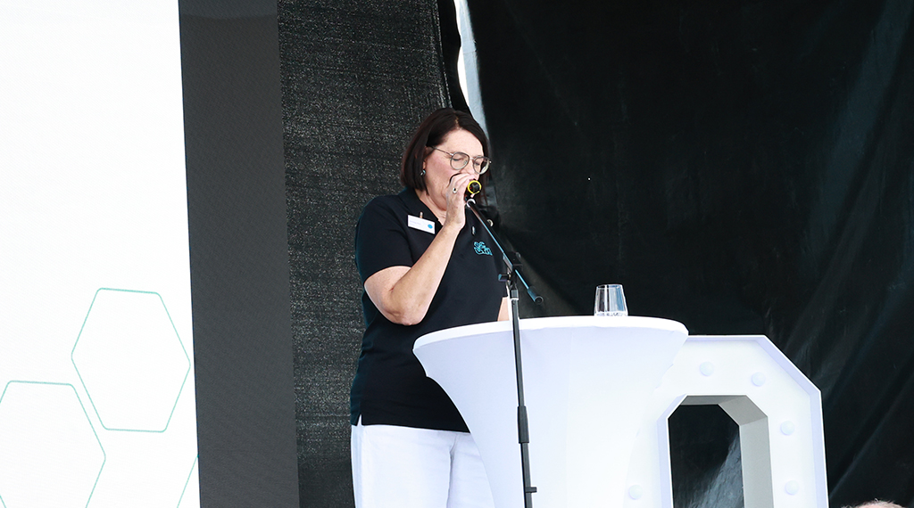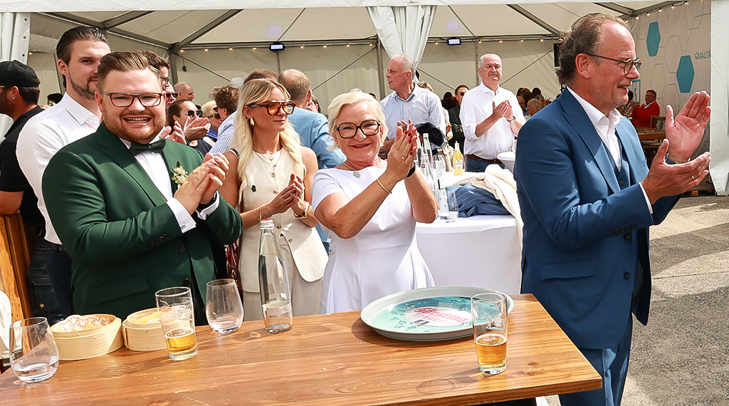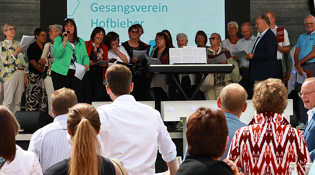 Glückwünsche zum 40-jährigen Betriebsbestehen adressierten außerdem der Landrat des Landkreises Fulda, Bernd Woide und der CDU-Landtagsabgeordnete Thomas Hering, die dem Unternehmen für die Zukunft alles erdenklich Gute wünschten. Als Überraschungsgäste fungierten das aktuelle Hessentagspaar, Vera und Max Dudyka, die dem Unternehmen herzlich zum 40-jährigen Betriebsjubiläum gratulierten und erneut auf den Hessentag in Fulda 2026 einstimmten. Mit einem Geburtstagsständchen überraschte der Gesangverein 1882 Hofbieber e.V. Für musikalische Unterhaltung sorgte außerdem die Volksmusikband „Rhöner Urstoff“ mit bekannten Hits wie „Über den Wolken“, „Grüß mir die Heimat“ oder der „Rosi Polka“, zu denen kräftig mitgesungen und mitgeschunkelt wurde.