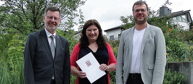 Überreichte an Studiendirektorin Isabel Herbert die Urkunde (v.l.): Harald Persch (stellvertretender Amtsleiter des Staatlichen Schulamtes für den Landkreis Fulda), Studiendirektorin Isabel Herbert (Schulleiterin der Eduard-Stieler-Schule Fulda) und Studiendirektor Boris Krieg (stellvertretender Schulleiter der Eduard-Stieler-Schule). Fotonachweis: privat.