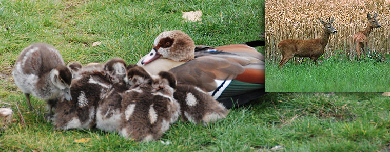 Zum ersten Mal sind dort drei Nilgänse zu finden. Der Rehwildabschlussplan wurde nicht erfüllt. (kleines Bild.) Zum Vergrößern anklicken