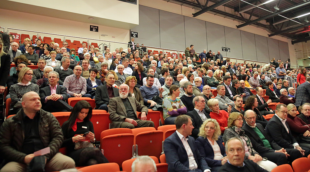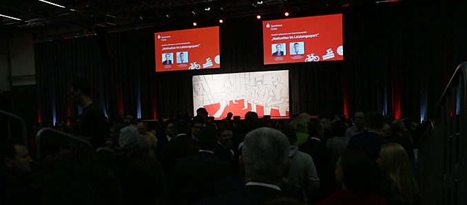 „Dieser Abend wird einfach etwas anders sein, als das, was viele von Ihnen bisher von unserer Jahresauftaktveranstaltung gewohnt sind“, sagte der stellvertretende Vorstandsvorsitzende der Sparkasse Fulda, Uwe Marohn, am Donnerstagabend in der Esperantohalle des Kongress- und Kulturzentrums in Fulda anlässlich der diesjährigen Jahresauftaktveranstaltung der Sparkasse Fulda. „Kein Theatersessel, kein Vortrag, kein eingebettetes Konzert – stattdessen Stühle und Tribüne, ein zahlenmäßig weitaus größeres Publikum, mehr Unterhaltung und vor allem eine moderierte Diskussion mit zwei ausgewiesenen Experten zu einem spannenden Thema aus der Welt des Sports“, so Marohn weiter, der hiermit auch die an ihn, im Vorfeld der Jahresauftaktveranstaltung herangetretene Frage, warum die Jahresauftaktveranstaltung der Sparkasse Fulda in diesem Jahr in der Esperantohalle stattfinde, beantwortete. Demnach sei es vor allem das neue Format gewesen, das einen Ortswechsel erforderlich gemacht habe.