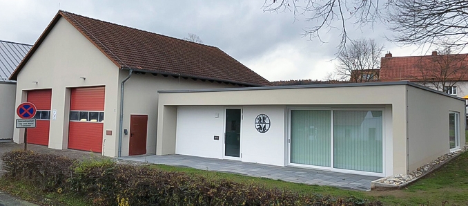 Das Feuerwehrhaus mit neuem Anbau. Die Einweihung findet am 26. April 2020 statt.