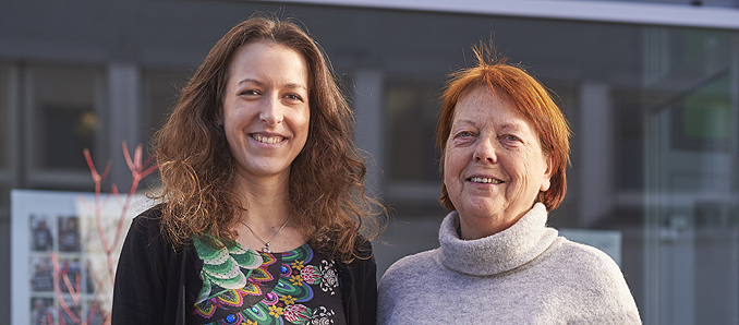 Janina Reinhardt und Marion Neumeister vor der Kreisgeschäftsstelle in Fulda. (v.l.)