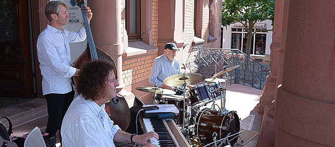 Jazz vom Feinsten gab es beim Auftakt der Kulturhappen der Stadt Hünfeld. Bei bestem Wetter spielte das Frankfurt Jazz Trio unter den Rathausarkarden. Thomas Cremer, Martin Sasse und Martin Gjakonovski hatten Swing und Jazz in bester Vollendung dabei – und begeisterten die Zuschauer auf dem Rathausplatz. Begrüßt wurden die Zuschauer von Bürgermeister Benjamin Tschesnok. Die Termine für die weiteren Kulturhappen: Das Trio Janero mit Mike Jehn, Jürgen Feller und Stefan Jäger tritt am Freitag, 22. Juli, zwischen 17.30 und 18.30 Uhr unter den Rathausarkaden auf, der Eintritt ist frei. Die Musiker spielen Klassiker der 50er, 60er und 70er Jahre. 3D-Street-Art am Rathaus gibt es von Dienstag bis Freitag, 9. bis 12. August, zu bestaunen. Gezeichnet werden die Motive von der Künstlerin Marion Ruthard. Das Musikduo „Farbrausch“ mit Julia Möller und Josef Zenisek spielt am Freitag, 12. August, unter den Rathausarkaden. Mit dabei haben sie zeitlose Gitarrenmusik und eigene Interpretationen. Der Eintritt ist frei. Ein Open-Air-Kino wird am Samstag, 20. August, auf dem Gelände des Museums Modern Art veranstaltet. Gezeigt wird die Krimikomödie „Das schwarze Quadrat“. Tickets gibt es online unter www.pretix.eu/huenfeld , im Bürgerbüro und der Touristinfo. +++