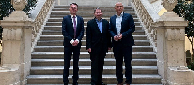 Vizepräsident des Amtsgerichts Darmstadt Erik Geisler, Präsident des Amtsgerichts Markus Herrlein und Justizminister Roman Poseck (v.l.n.r.) Foto: hmdj