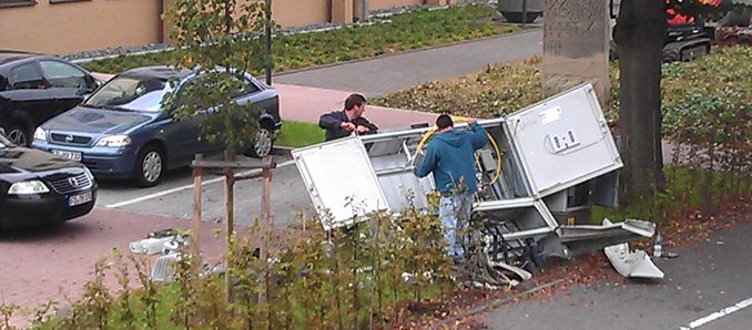 Fulda. Heute Morgen hat ein PKW einen Kabelverzweiger der Telekom in der Wörthstraße bei einem Verkehrsunfall zerstört. Hierdurch ist für ca. 10 Telekom-Kunden vorübergehend der Telefon-, Internet- und TV-Empfang ausgefallen. Andere Kunden, deren Anschlüsse ebenfalls über diesen Verzweiger laufen, sind hiervon nicht betroffen. Derzeit arbeitet die Telekom mit Hochdruck an der Instandsetzung des Kabelverzweigers. Wie das Unternehmen auf Anfrage von fuldainfo mitteilte, geht man aktuell davon aus, dass die Arbeiten bis morgen früh abgeschlossen sind. +++ fuldainfo | Bilder: Leserfotos