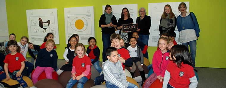 So statteten die Kinder der sogenannten „Reception Class ‚Die Eichhörnchen‘“ der Grundschule des in Fulda ansässigen Bildungsunternehmens Dr. Jordan gemeinsam mit ihrer Klassenlehrerin Frau Silvia Aland der Kinder-Akademie Fulda einen Besuch ab. Als Präsent und Dank für den Ausstellungsbesuch erwartete die Schulklasse - unter den Kindern befand sich 3.000. Besucher – ein, mit bunten Schokolinsen verzierter Kuchen. Die Kinder freuten sich sichtlich über die Süßigkeit und ließen sie sich im Nachgang an den Ausstellungsbesuch munden.