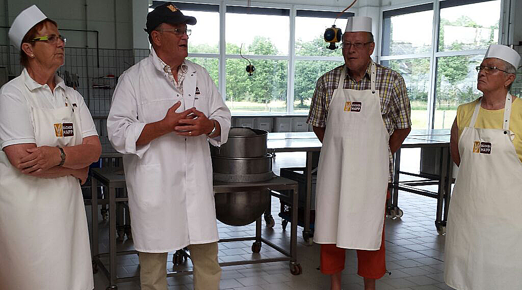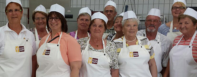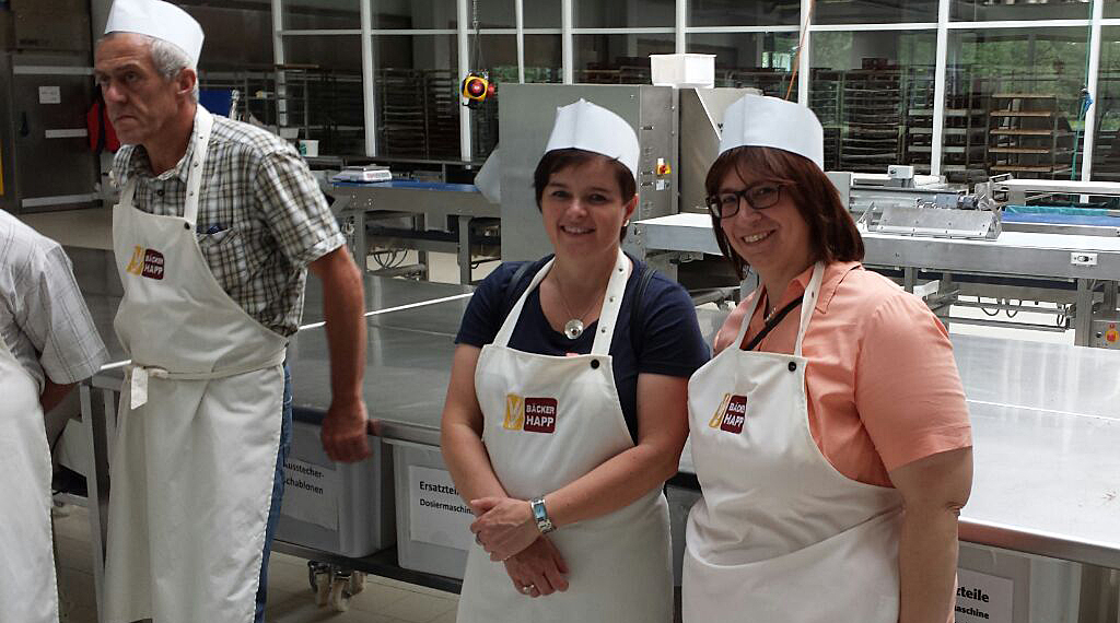 1972 übernahmen Franz-Karl und Anita Happ die Bäckerei und sie vergrößerten sie auf eine Fläche von 500 m². In 1992 wurde die Backstube in einem zweiten großen Erweiterungsschritt auf 1750m² entwickelt. Seit der Übernahme des Geschäftes durch die 2 Söhne in 2005 wurde das Liefergeschäft eingestellt und der Betrieb in einen modernen Filialbetrieb umstrukturiert. Die Bäckerei wuchs auf eine Produktionsfläche von 4.500 m² an. Das verantwortungsbewusste Umgehen mit den Mitarbeitern ist ein besonderer Teil der Firmenphilosophie, berichtete uns Herr Happ. Zur Zeit werden 500 Mitarbeiter in 46 Filialen, davon alleine rund 20 Auszubildende beschäftigt. 87 Prozent davon sind weibliche Kräfte.